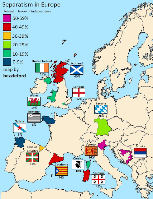 Il est indéniable que la tentation centrifuge s’exerce de plus en plus fortement sur les pays à tendance centralisatrice (Espagne, France, Angleterre, Italie). La dissolution des vieux États-nations par le haut (primauté du droit de l’Union Européenne) et par le bas (réaffirmation des régions) est en gestation depuis plusieurs années, et il faut bien reconnaître que l’Allemagne est un des rares pays à ne rien craindre de ce point de vue en raison de sa structure fédérale et de sa bonne santé économique globale.